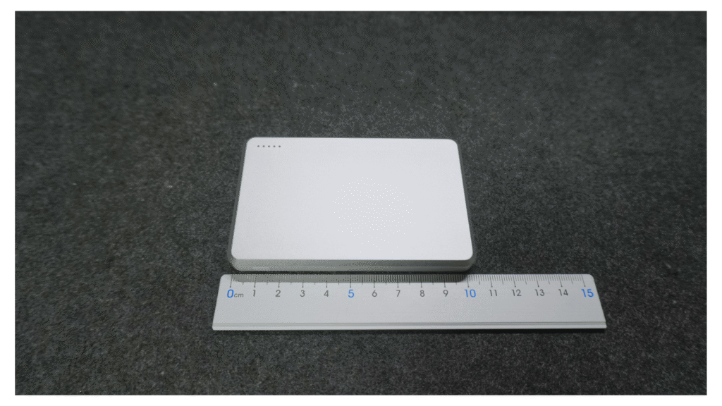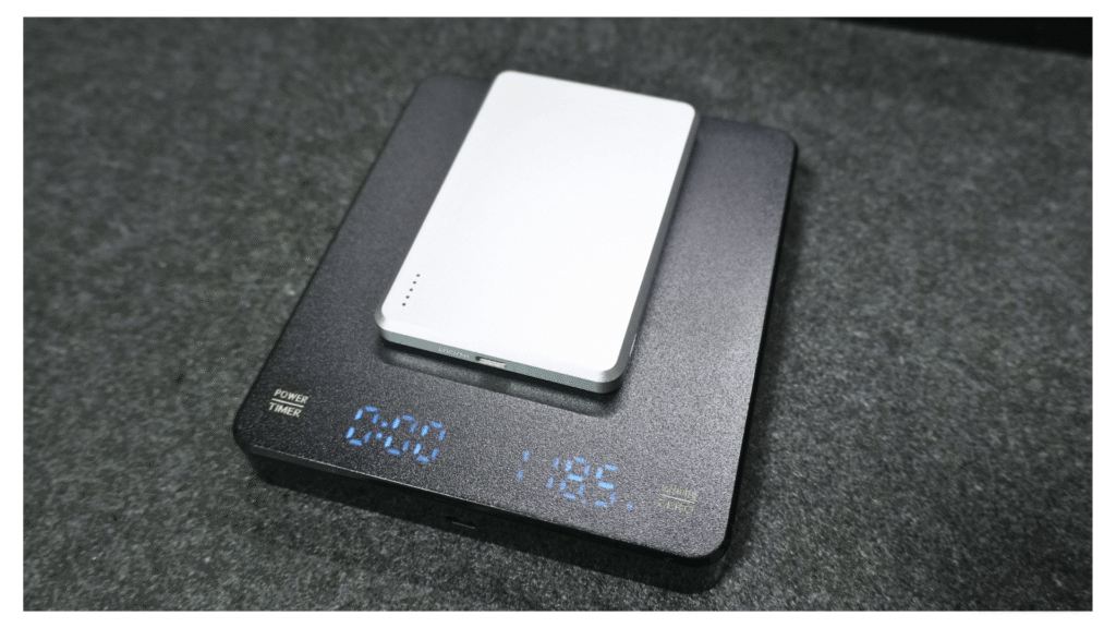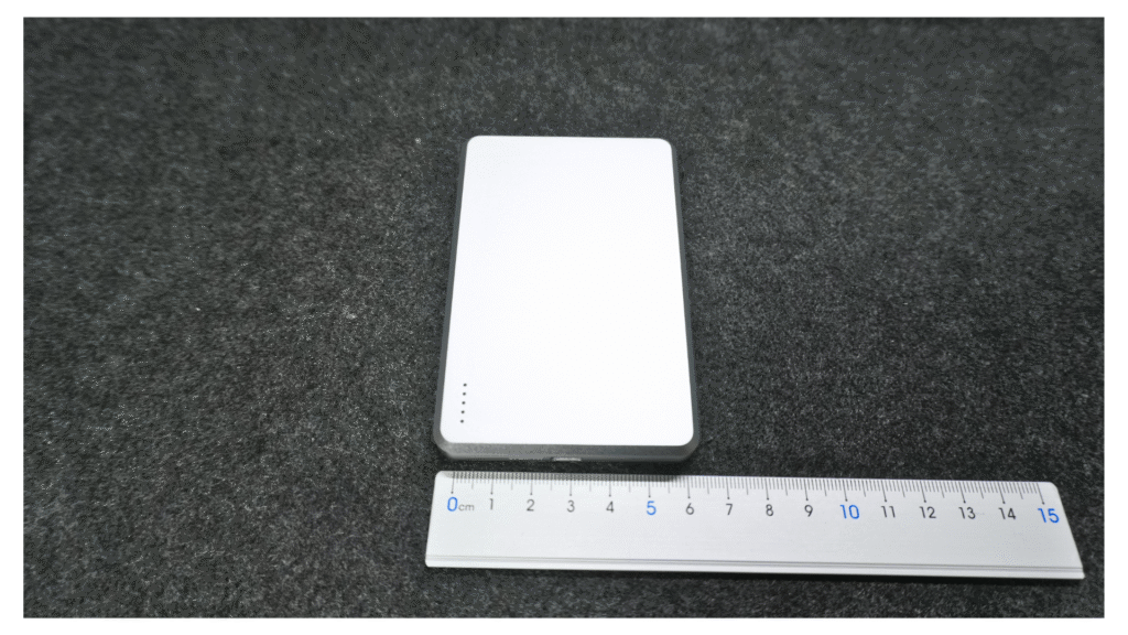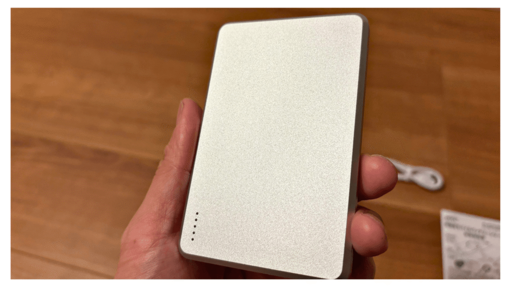 本体サイズは105×68×9.5mmと、クレジットカードよりも一回り大きい程度で、厚みはなんと9.5mm。これは私がこれまで使用してきたどのモバイルバッテリーよりも薄く、スマートフォンと一緒に持っても違和感がありません。