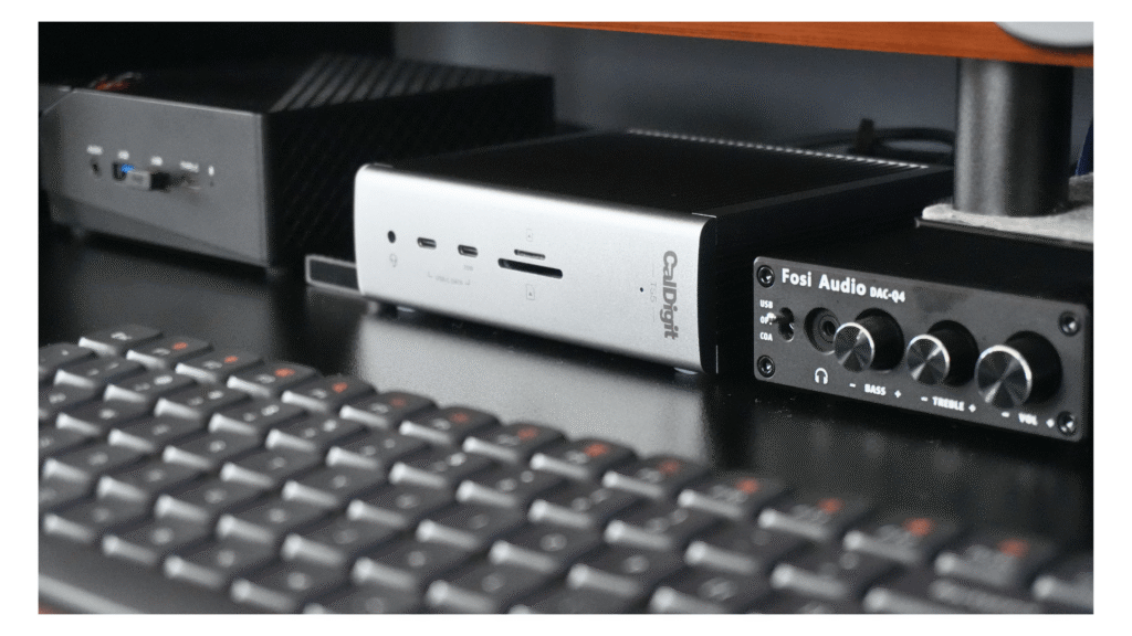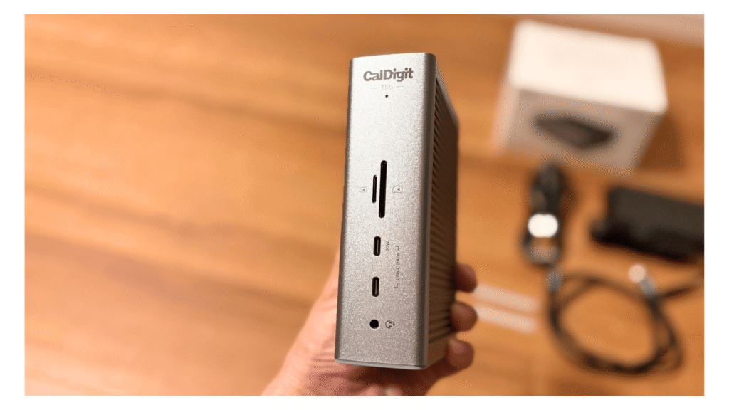 そこで辿り着いたのが、CalDigit TS5です。Thunderbolt 5という最新規格に対応したこのドックは、今の私のMacBook Airにはオーバースペックかもしれません。それでも、近い将来にモニターを増設したい、あるいはMacBook Proへ買い替えるかもしれないという「未来への投資」として、この製品を選びました。今回は、そんな視点も交えながら、CalDigit TS5の魅力と、上位モデルTS5 Plusとの違いを徹底的に解説していきます。