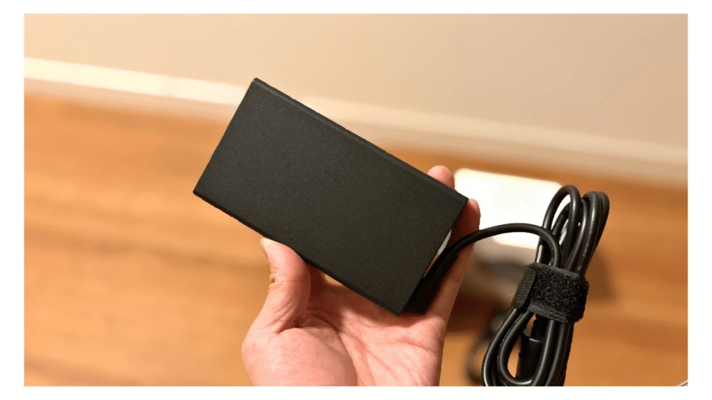 | 240W電源アダプター | 前世代のTS4よりコンパクトになっています。とはいえ、本体よりは大きい「ブリック型」なので、デスク下やサイドに設置するのが良いでしょう。 |