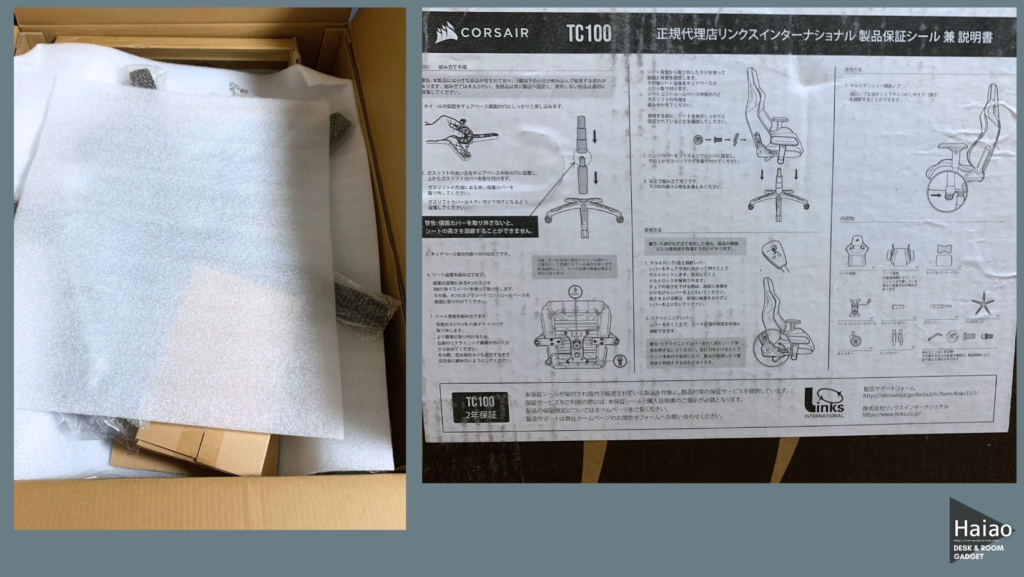TC100 RELAXED Fabricは、購入後に自分で組み立てる必要があります。組み立て自体は難しくありませんが、いくつか注意点があります。