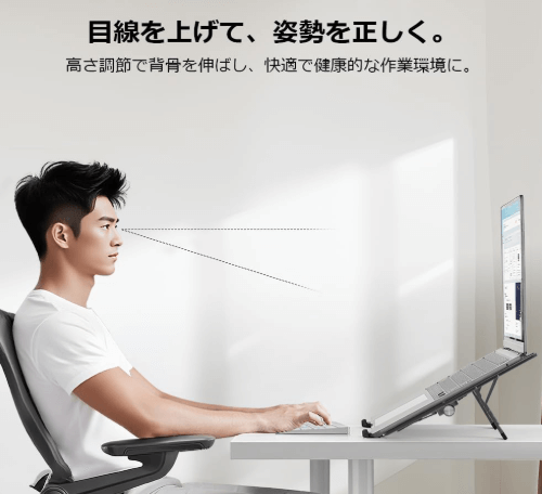 在宅ワークが増えた今、作業環境の見直しを考えている方、長時間のPC作業で身体の不調を感じている方、そして移動先でも快適な作業環境を確保したい方にとって、このスタンドは間違いなく役立つ相棒になるでしょう。