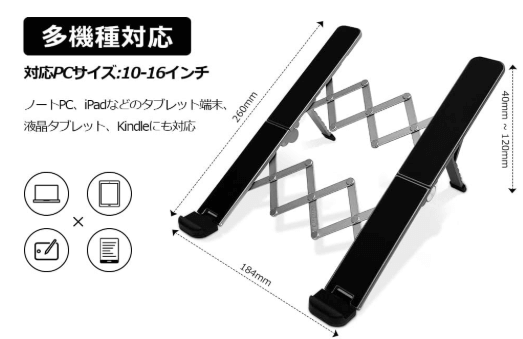 16インチのサイズまでとのことで、最大耐荷重の5kgを超えるような重い17インチノートPCを使用する方には、もう少し大型のモデルを購入しなければなりません。