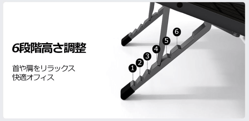 軽量でありながら確かな安定感を実現した設計、6段階の高さ調整による姿勢改善効果、優れた放熱性能――これらがすべてコンパクトな折りたたみ式パッケージに詰め込まれています。