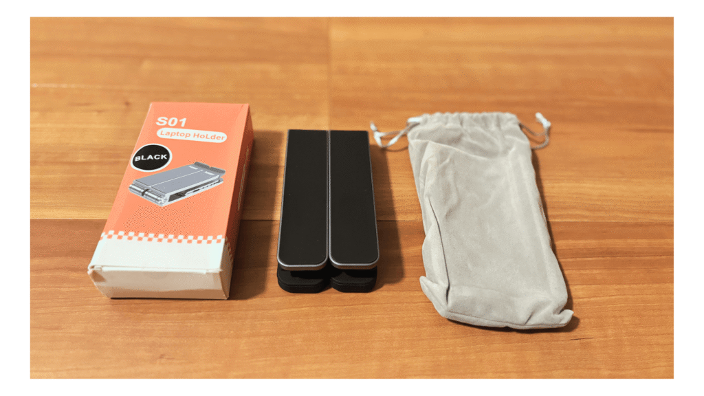 パッケージを開けると、すっきりと整理された内容物が目に入りました。スタンド本体と収納袋のみのシンプルな構成ですが、これこそが本当に必要なものだけを揃えた賢い設計だと感じました。