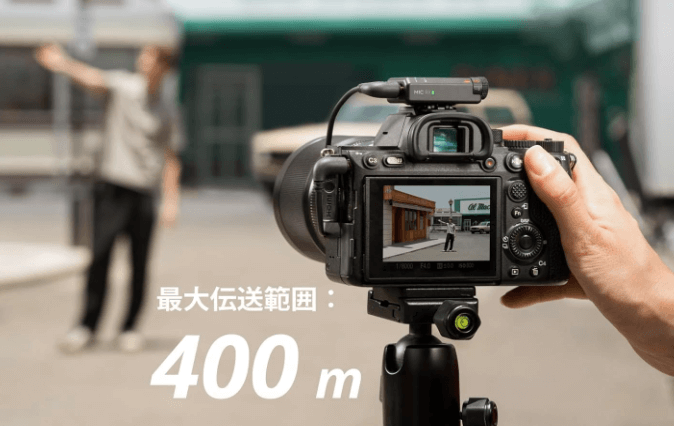 DJI Mic Miniが公称する最大伝送距離は400m(見通し距離)です。これは、一般的な2.4GHz帯のワイヤレスマイクと比較しても非常に長く、DJI独自の最適化された伝送プロトコルとアンテナ設計によって実現されています。しかし、2.4GHz帯はWi-FiやBluetoothなど、他の多くの無線機器と共用されているため、電波干渉を受けやすいという特性も持ち合わせています。