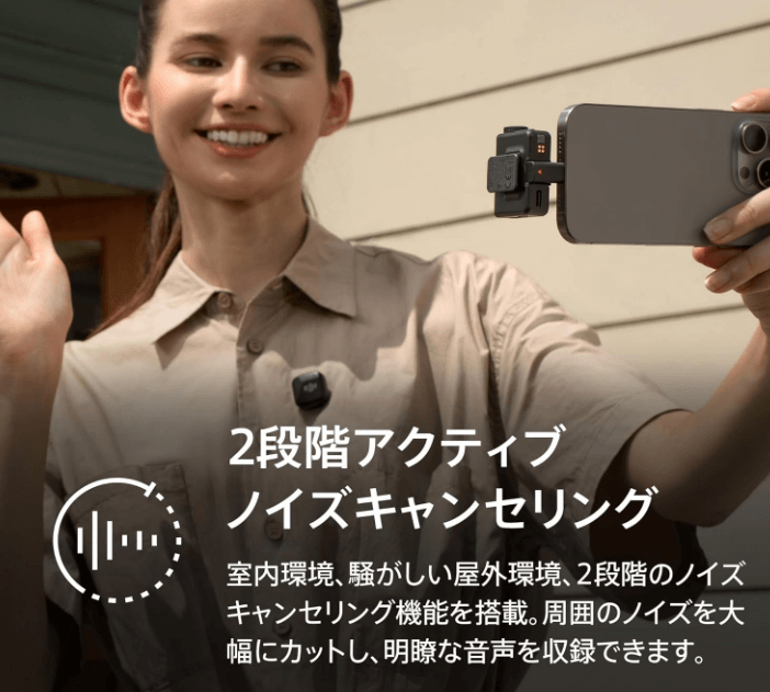DJI Mic Miniは、クリアな音声を収録するために、パワフルなノイズキャンセリング機能を搭載しています。この機能は、以下の2つのレベルで提供されます。