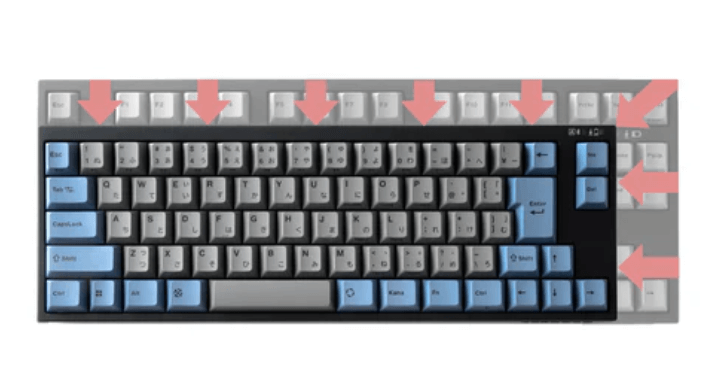 FC660MBT GRAYBLUEの最大の特徴の一つが、そのコンパクトなサイズながら矢印キーを備えた65%レイアウトです。