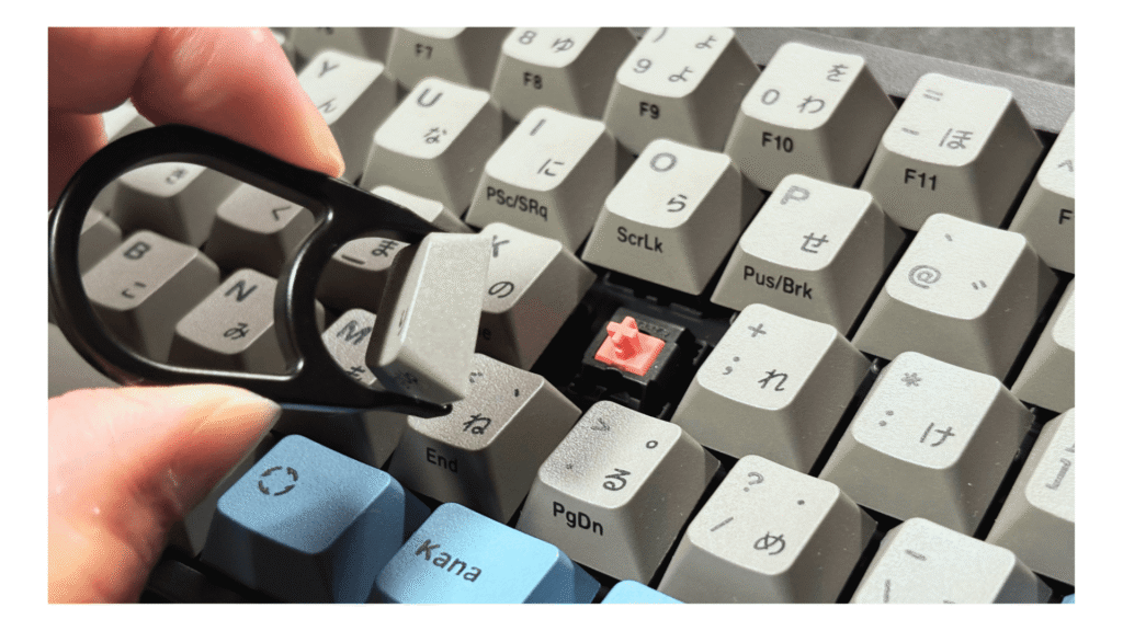 ただし、注意点が2つあります。まず、日本語JIS配列特有のキー(特にスペースキー周りのキーや変換・無変換キー)については、他のキーキャップセットに含まれていない場合があります。また、キーキャップのステム(スイッチとはめる部分)の形状が合うことを必ず確認してください。