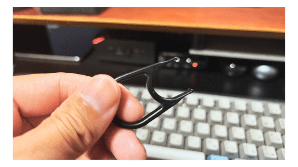 キーキャップ開け用のツールは小さなプラスチック製のピックで、これが後々の交換で大活躍することになります。