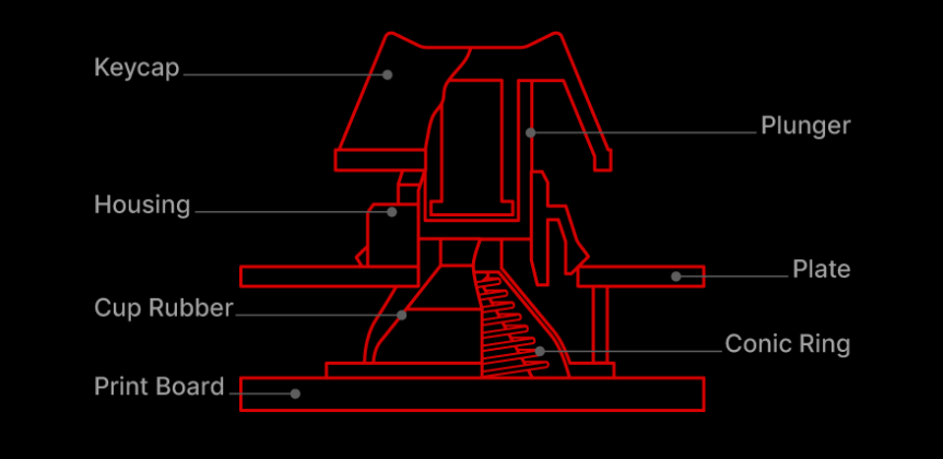 - 静音性: 振動がケースに伝わりにくくなるため、不快な反響音(ハウジングノイズ)が大幅に低減され、心地よい「コトコト」という静かな打鍵音になります。