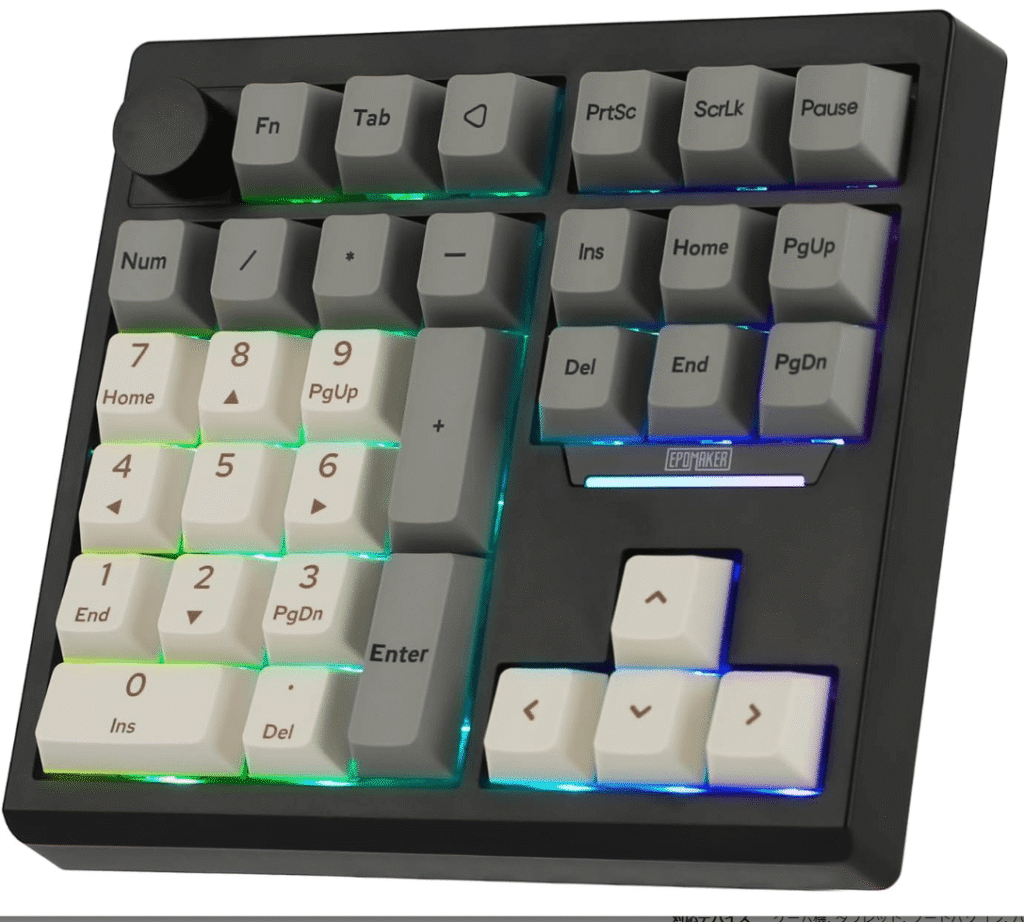•理由: これらの製品はすべてQMK/VIAに対応しており、キーの再マップや複雑なマクロを自由に設定できます。特にEPOMAKER TH33は、Delete、Home、ENDなどのキーも搭載しているため、プログラミングや文書編集のショートカットをテンキーに集約し、左手だけで操作を完結させることが可能です。EK21のアルミ製ノブは、デザインソフトでのブラシサイズ調整やズーム操作に割り当てるなど、直感的な操作を可能にします。