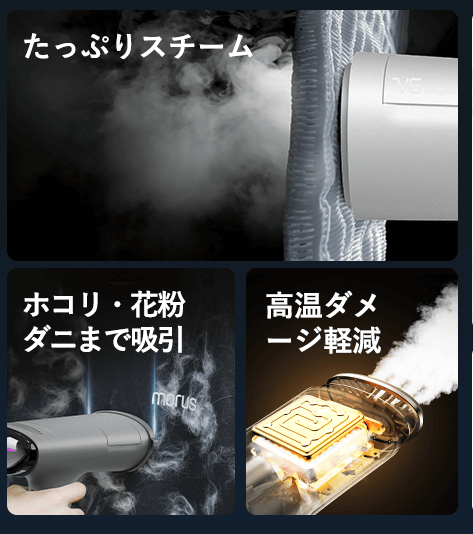 衣類スチーマーの重要な機能の一つが、除菌脱臭です。Morus V6 Plusは、高温スチームによる衛生ケアに加え、吸引機能を組み合わせることで、さらに高い効果を目指しています。
