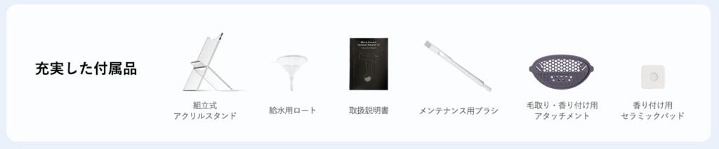 付属品 組立式アクリルスタンド、長ブラシ、除毛用アタッチメント