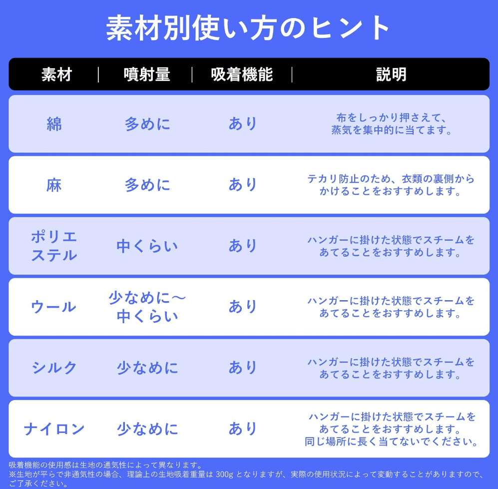 素材別 スチーマー性能比較