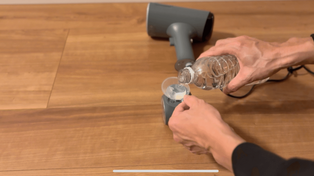 1. 水タンクに専用の洗浄剤(またはクエン酸水溶液など)を入れる。