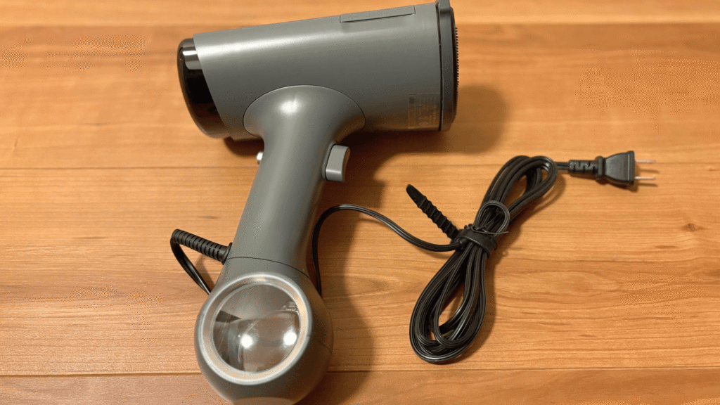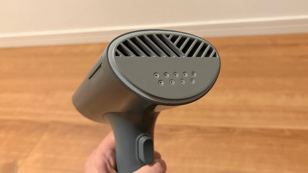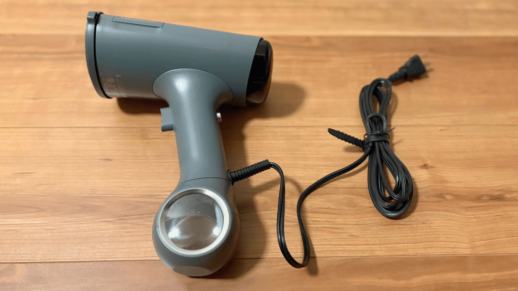 本体の寸法は、幅174mm × 奥行241mm × 高さ109mmと、一般的なハンドヘルド型スチーマーと比較してやや大ぶりですが、その分、水タンク容量が170mlと比較的大きく、頻繁な給水の手間を減らしています。