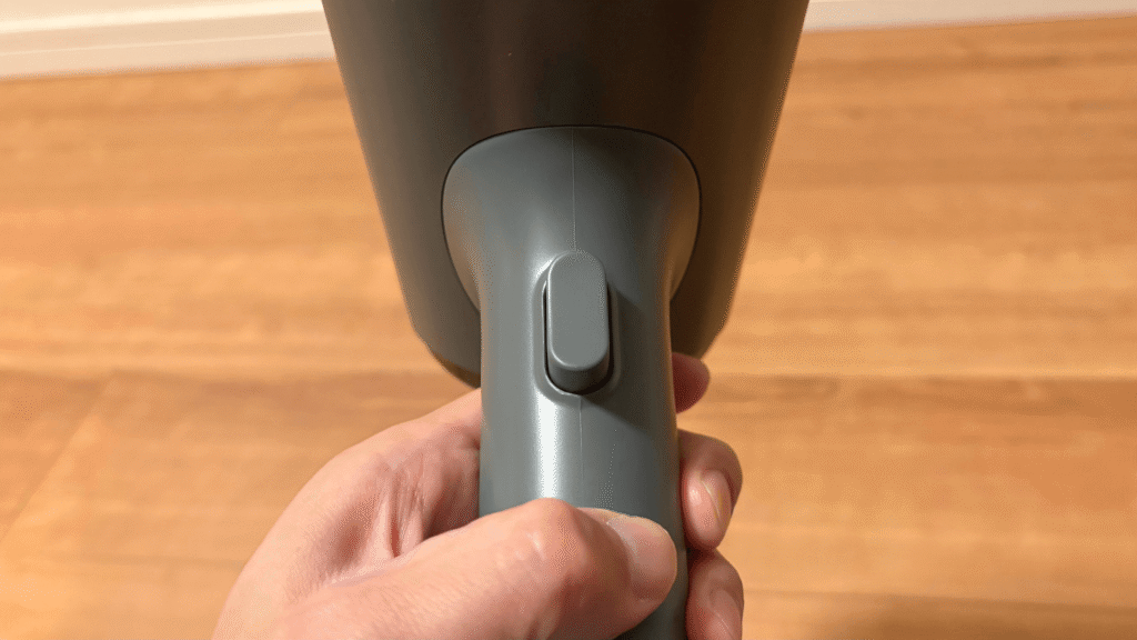 これにより、片手で操作が完結するため、従来の「両手で衣類を引っ張りながらスチームを当てる」作業よりも、体感的な負担は軽減されます。長時間の連続使用や、腕を高く上げての使用は負担になる可能性があるため、休憩を挟みながら使用することをおすすめします。