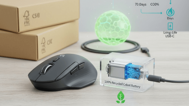 現代において、製品選びの基準は性能や価格だけでなく、環境への配慮も重要な要素となっています。ロジクールはMX Master 4において、このサステナビリティへのコミットメントを明確に示しており、単なる高性能デバイスに留まらない、環境負荷低減に貢献する製品として位置づけています。