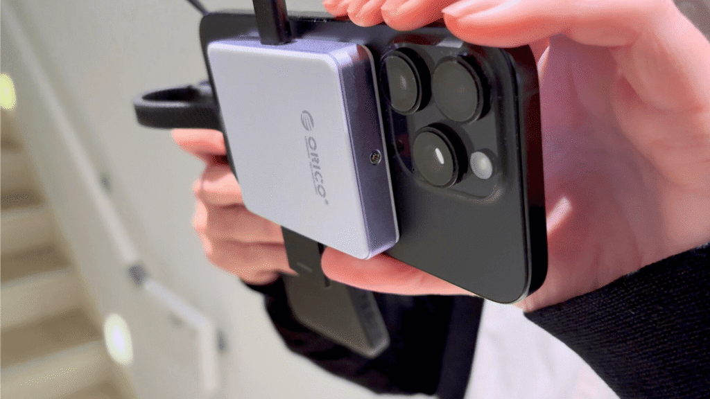 実際にiPhone 16 Proに本ケースを装着し、M.2 NVMe SSDを組み込み、4K/60fps ProRes録画を試みました。マグネット吸着でジンバル使用時などの取り回しが快適。