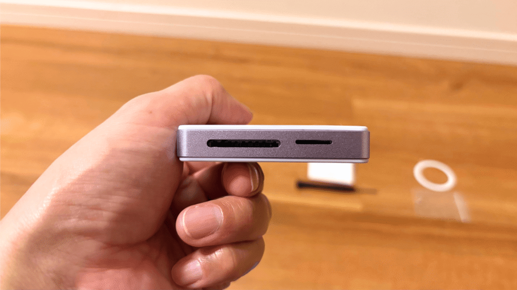 カメラを高度に使うユーザーのワークフロー改善として、大量のRAWファイルや4K/60fpsなどの大容量Micro SDカードの映像を、従来の低速なカードリーダーと比較して大幅に短縮できます。SSDに動画ファイルを保存しながら、同時にSDカードから静止画を取り込むといった、マルチタスクなデータ管理も可能です。