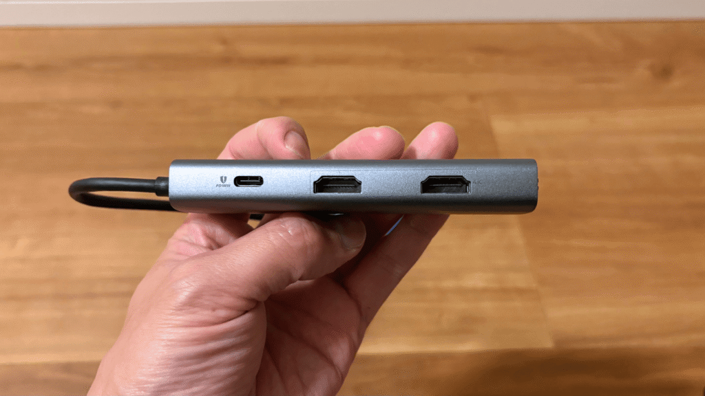 最大の特長の一つが、2つのHDMIポートによるデュアル4K出力です。最近のノートPC、特にUSB-Cポートが1つか2つしかない機種では、これ自体が夢のような機能です。