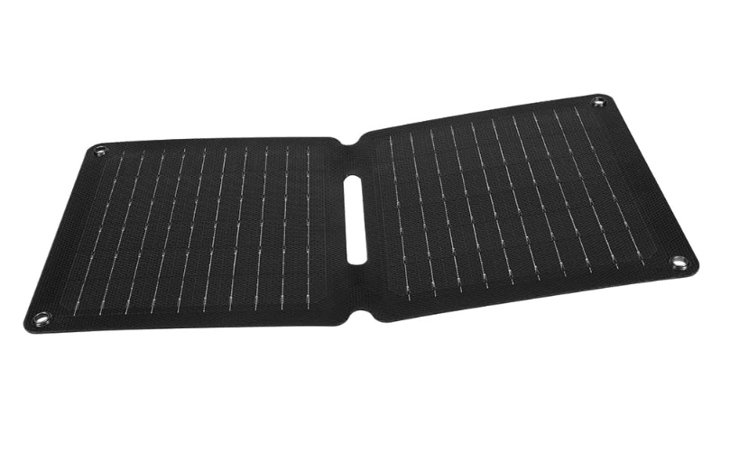 今回紹介する「オウルテック 折りたたみ式 ソーラーパネル 10W出力」は、高効率な単結晶シリコンを採用し、なんとA4サイズより小さく折りたためる携帯性の高さが魅力。