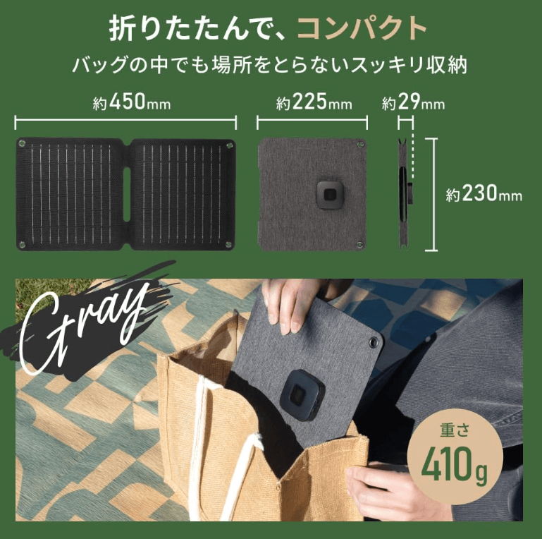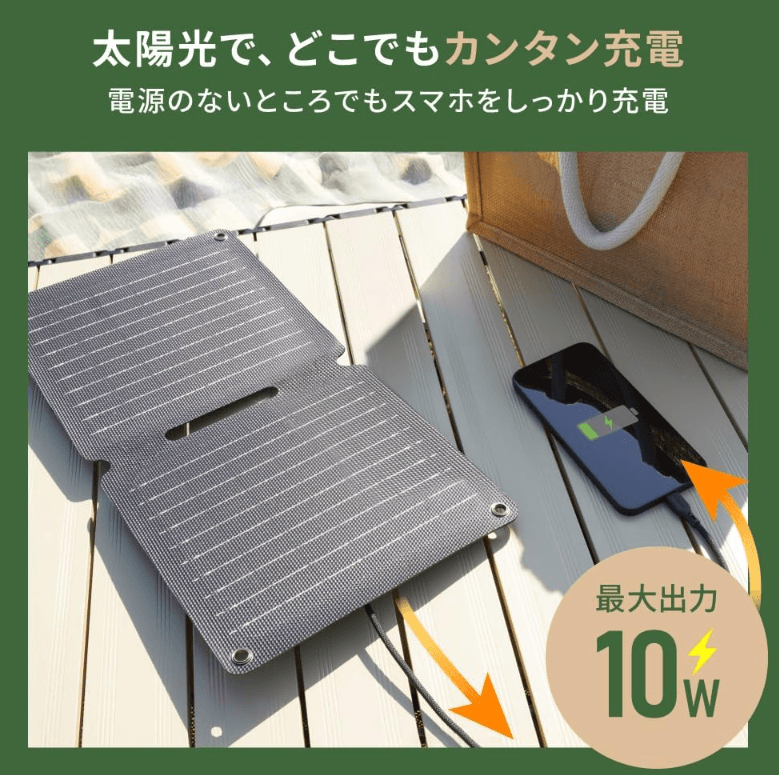 | こんな人におすすめ | アウトドア初心者からベテランまで。日常使いや防災準備として手軽に太陽光発電を始めたい方。スマホやモバイルバッテリーの充電に特化した実用的なギアを探している方。 |