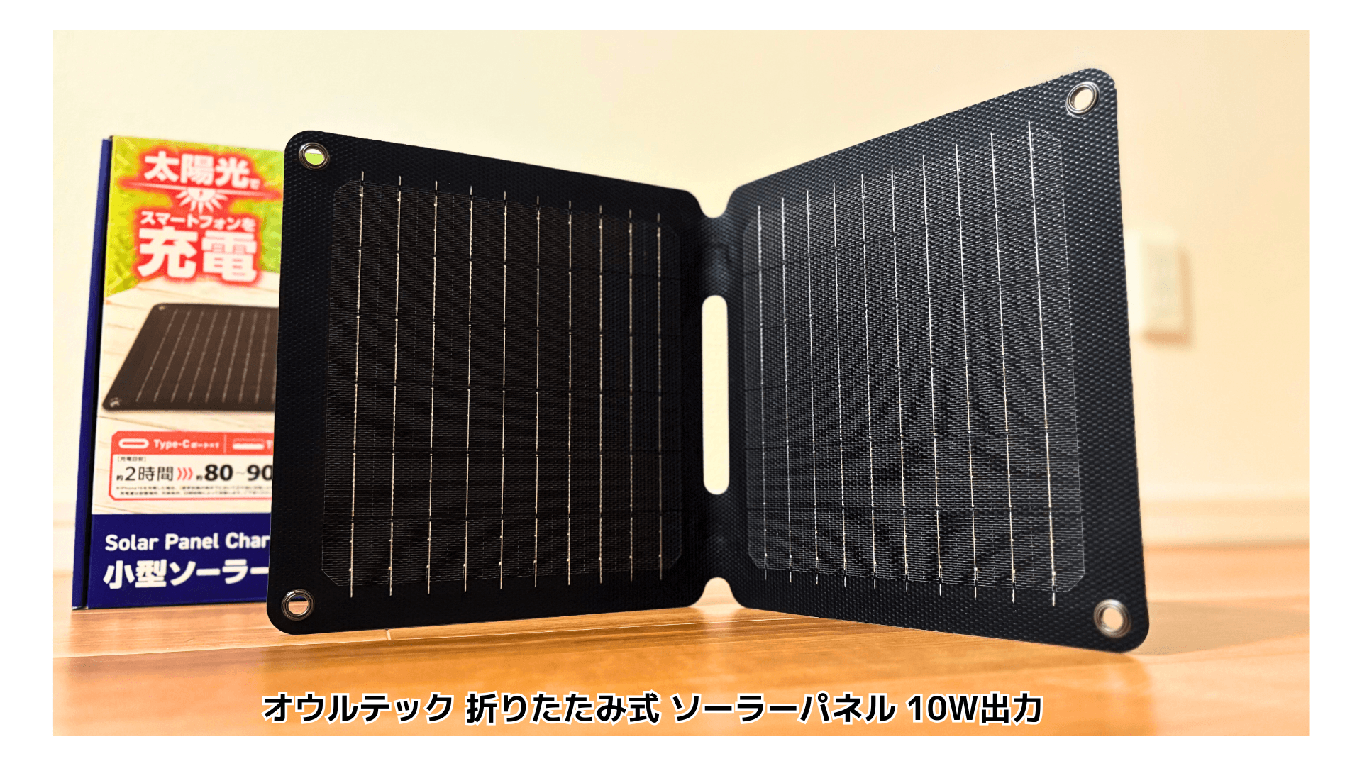 今回紹介する「オウルテック 折りたたみ式 ソーラーパネル 10W出力」は、高効率な単結晶シリコンを採用し、なんとA4サイズより小さく折りたためる携帯性の高さが魅力。