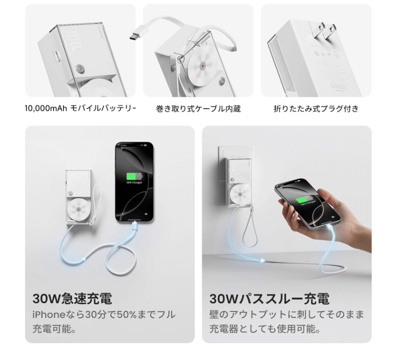 究極の3-in-1統合:充電器、モバ充、ケーブルが一体化