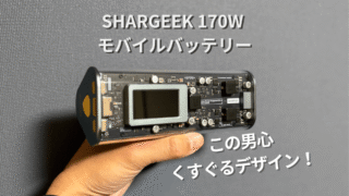 以前レビューした同じくSHARGE製品の「SHARGEEK170W モバイルバッテリー」も同じ透明デザイン。こちらの筐体も魅力的なのであわせてチェック↓