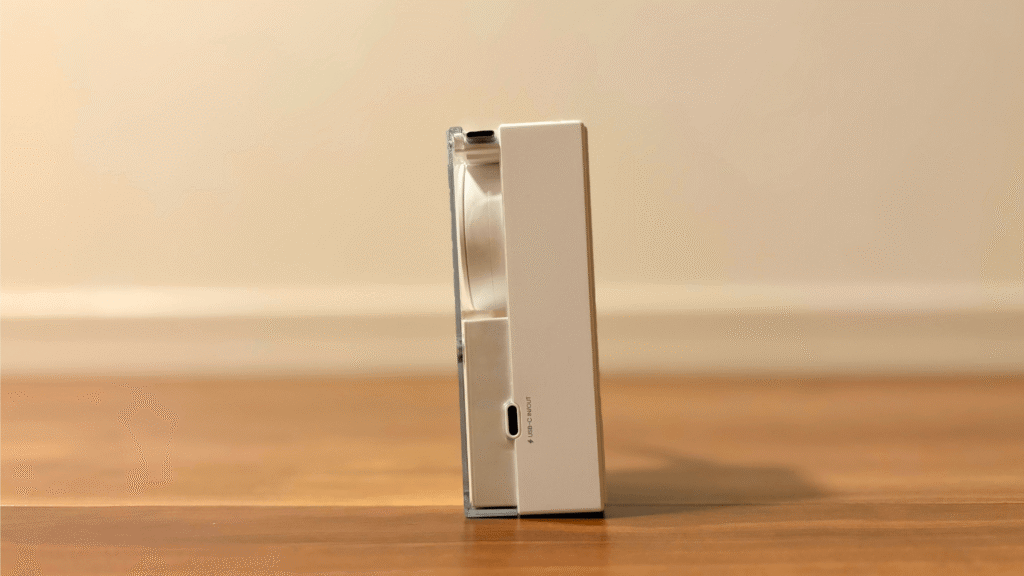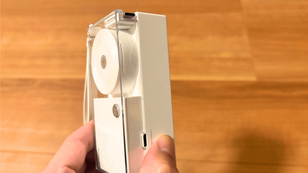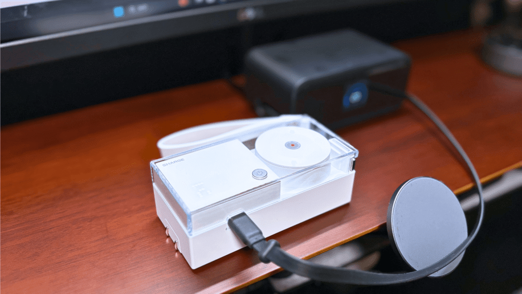 SHARGE製品の代名詞とも言える透明デザインは、本製品でも健在です。内部の基板やバッテリー、巻き取り機構といったエレガントな「建築」をあえて見せることで、ガジェット好きの心をくすぐる近未来的な美しさを実現しています。特に白基調のデスク環境やガジェットで統一している方には、最高のアクセントとなるでしょう。