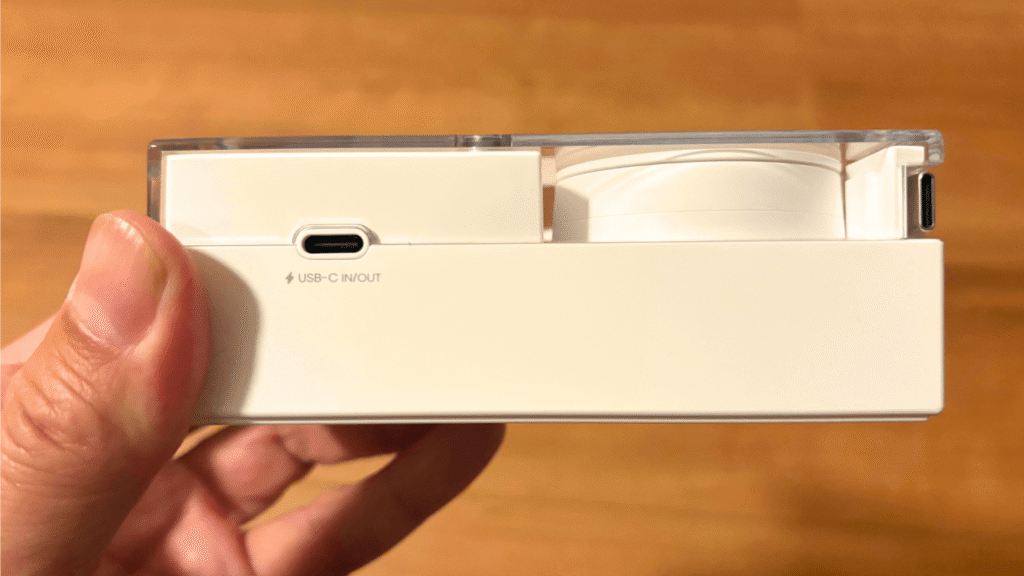 この重量感は、10,000mAhという大容量バッテリーと、GaN充電器としての部品が内蔵されていることを考えれば納得できます。