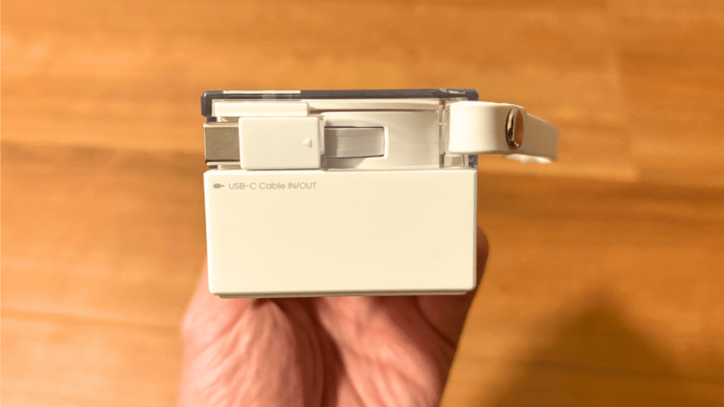 内蔵されている巻き取り式ケーブルはUSB Type-Cコネクタです。そのため、iPhone 15シリーズ以降のUSB-Cポートを搭載したiPhoneや、Androidスマートフォン、タブレット、その他のUSB-C対応デバイスでそのままご使用いただけます。
