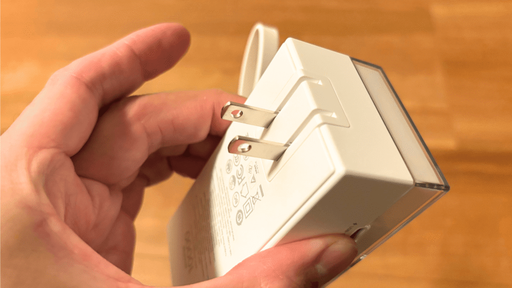 これらの特性により、GaN充電器は「小型化」「高出力化」「低発熱化」を同時に実現できるのです。本製品がモバイルバッテリーとAC充電器を一体化できたのは、このGaN技術による小型化の恩恵が非常に大きいと言えます。