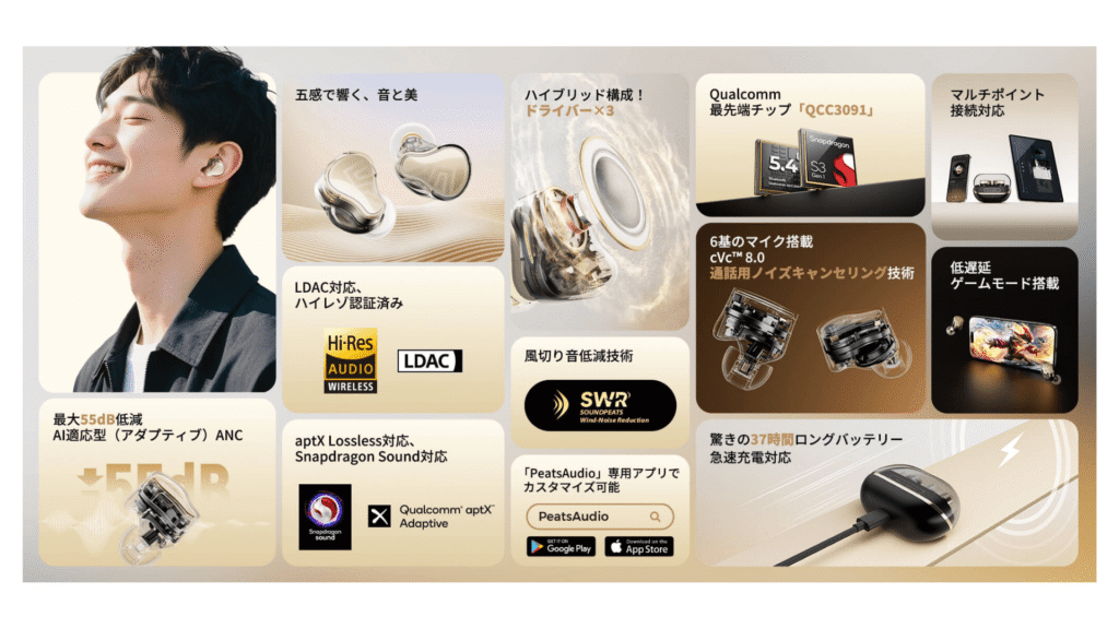 H3は、そんなSOUNDPEATSの集大成とも言えるフラッグシップモデルとして位置づけられています。これまでの製品で培った技術を惜しみなく投入し、さらに最新のオーディオ技術を融合させることで、ワイヤレスイヤホンの新たなベンチマークを確立しようとしています。
