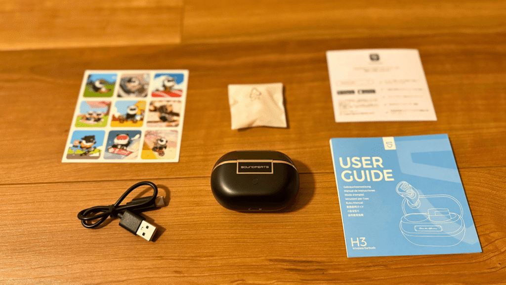 特筆すべきは、イヤーチップが5サイズも付属している点です。これは、ユーザー一人ひとりの耳の形に合わせた最適なフィット感を提供しようとするSOUNDPEATSのこだわりが感じられます。後述する装着感のレビューでも触れますが、この豊富なイヤーチップのおかげで、多くの人が快適な装着感を得られるでしょう。