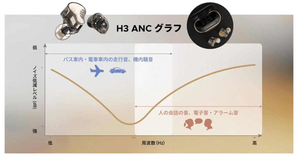 上記の比較表からもわかるように、H3は1万円台の価格帯でありながら、ハイブリッド3ドライバー構成、LDAC/aptX Lossless対応、ハイレゾ認証、最大55dBのAIアダプティブANCといった、上位モデルに匹敵する、あるいはそれ以上のスペックを誇っています。特に、ハイブリッドドライバーによる音質の豊かさ、そして業界トップクラスのノイズキャンセリング性能は、この価格帯ではなかなか見られない特徴です。