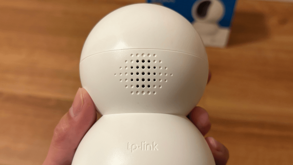 | Tapo C200 カメラ本体 本体 | 思ったよりもコンパクトで、重さは約190g。手に取るとプラスチック製ながらもずっしりとした安心感があります。 |