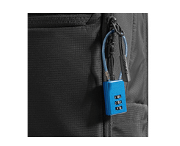 多くの市販のケーブルロック(ワイヤー式の南京錠)が該当します。例えば、旅行用品売り場などでよく見かける、細めのワイヤーが付いた小さな南京錠を想像していただければ分かりやすいです。2つのジッパーの引き手を重ね、その穴にロックを通すだけで簡単に施錠できます。ただし、ロック本体は付属していないため、別途ご用意が必要な点にご注意ください。カフェでのちょっとした離席時や、満員電車の中での安心感が大きく向上します。