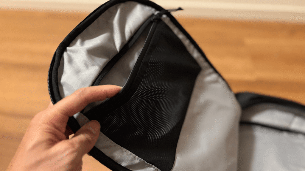 小物収納にも優れており、前面の2つのポケットではスマートフォン、財布、鍵などが整理でき、内側のメッシュポケットでは貴重品やプライベートなアイテムをしっかり収納できます。これにより、これまで別途ポーチを用意していた小物類も、すっきりと整理できるようになりました。