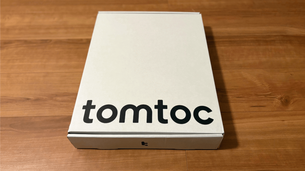 商品が到着したとき、まず気になったのはその包装の丁寧さでした。段ボール箱を開けると、tomtocのロゴが入ったシンプルな包装袋に入っており、開封時のワクワク感を盛り上げてくれます。