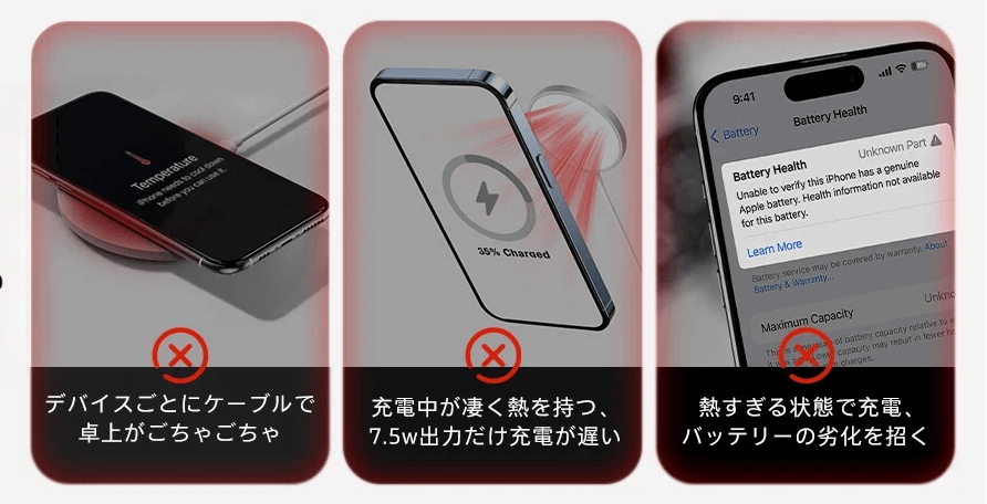 ワイヤレス充電はケーブルの抜き差しの手間をなくし、生活に不可欠なものとなりました。しかし、「充電速度の遅さ」と「発熱によるバッテリーへの影響」という共通の不満がありました。