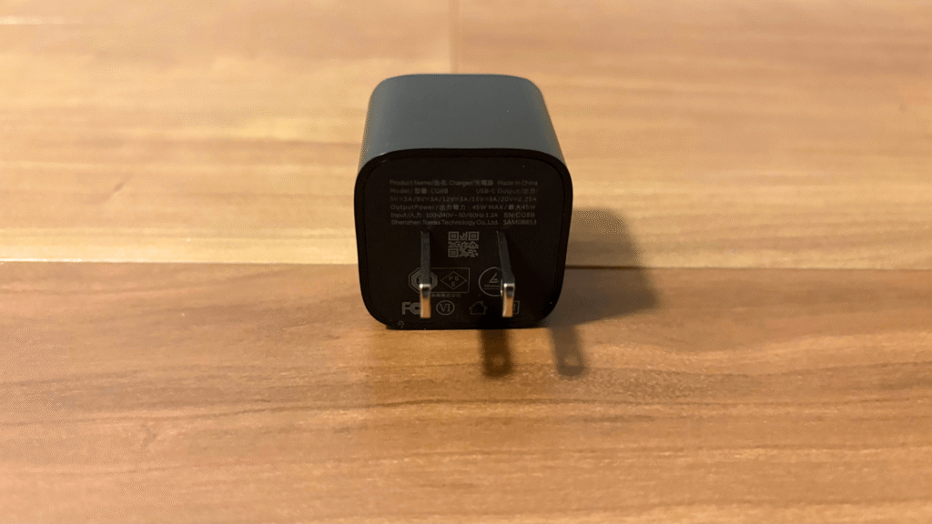 ワイヤレス充電器本体に25Wを供給しつつ、アダプタ自体に45Wという余裕を持たせているため、安定した電力供給とアダプタ自体の発熱抑制にも優れており、非常に質の高いACアダプタと言えます。