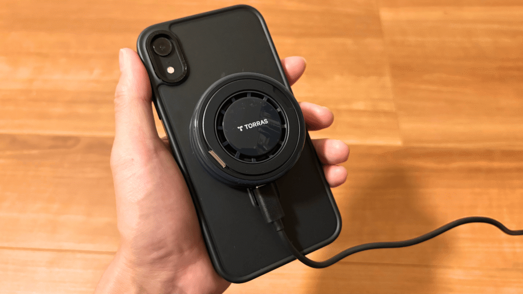 TORRAS MagSafe充電器に搭載されている冷却ファンは、静音モーターを採用しており、従来のファン付き充電器と比べて動作音を最大20%低減しています。一般的な環境(リビングやオフィス)であれば、ほとんど気にならないレベルの静音性を実現しています。