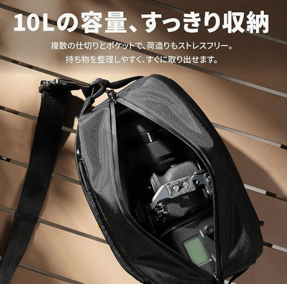 公式サイトでは「旅行用スリングバッグ」と紹介されるこの10Lバッグは、果たして軽量ミラーレスカメラとの旅に最適なパートナーとなり得るのか。実際に手に取り、機材を収納し、街中を歩いてその実力を確かめてみました。