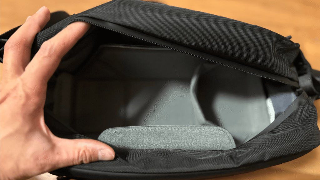 • パッド入りで保護性は高いのですが、薄型のカメラバッグに多い「マジックテープ式の薄い仕切り」に比べると、柔軟なレイアウト変更にはやや不向きかもしれません。あくまで1〜2区画を作るためのものと捉えるべきでしょう。