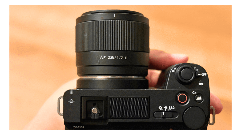 ZV-E10M2にVILTROX AF 25mm F1.7 Eを装着すると、そのバランスの良さに感動します。ZV-E10M2のコンパクトなボディに対して、レンズが大きすぎることはまったくなく、まるで純正レンズのような一体感があります。