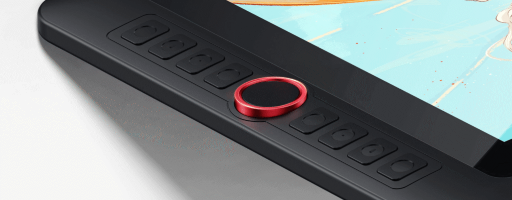 液タブの操作性は、クリエイターの作業効率に直結する重要な要素。XPPen Artist 13.3 Pro V2は、直感的で効率的な操作を可能にするための工夫が随所に凝らされています。その代表的な機能が、本体左側に配置されたレッドリングホイールと8つのカスタマイズ可能なショートカットキーです。