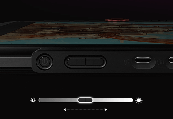 また、250 cd/m²の輝度と1670万色表示に対応し、明るく鮮やかな画面で作業可能です。本体のサイドには明るさ調整ボタンも搭載され、環境光に合わせて簡単に調整できるため、昼夜問わず快適に創作できます。